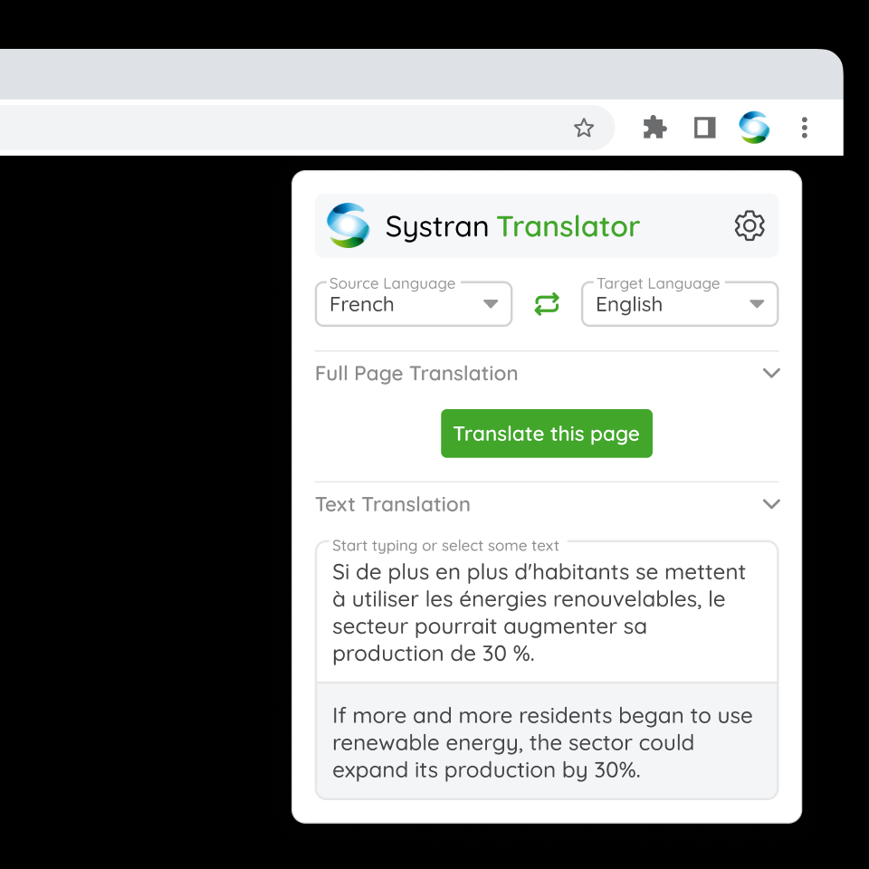 Systran's browser extension lets users instantly translate selected web content across languages. Though functionally reliable, the original extension had become outdated — visually inconsistent, difficult to use, and lacking the polish users expected from modern productivity tools.
